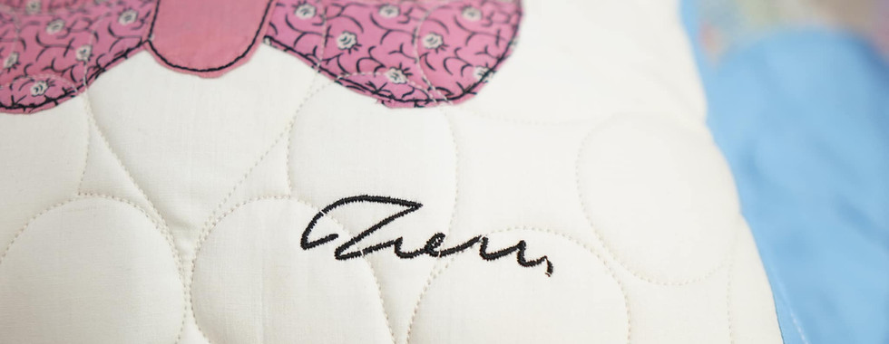 It was an absolute honor to be asked to complete this vintage masterpiece. I spent hours dreaming about what life might have been like for Tressie and her family. I hope that I did justice to her original vision. One of the fun pieces of the puzzle involved some hand-written notes both written by her and a note sent to her from a cousin. There were receipts and a magazine subscription renewal form, and the copyright date on one of the tissue paper pattern pieces was 1923! I found someone on Etsy who was able to digitize Theresa’s signature which I then embroidered onto the quilt label and pillow fronts.