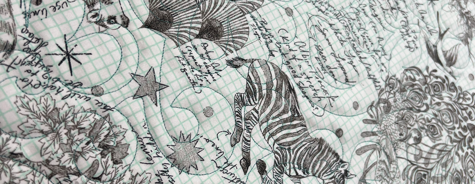 The first 2 quilts that I quilted for my friend Kate were so amazing, I never thought I'd see anything so beautiful again...boy was I wrong! This gorgeous quilt is entirely hand-sewn. Yes - needle and thread. (I know, right?!?) That in itself is one thing...but it's an English Paper Piecing pattern, and every stinking piece of fabric was fussy cut just so! The rainbows and dots are perfectly centered in each piece, the animals, the colors, even the stripes line up. She says this was 18 months in the making, it was a Block of the Month kit. Personally, I'm just not that ambitious. And sewing by hand is a little intimidating for me...I like my sewing machines!