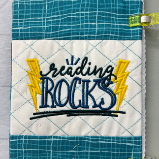 I was multi-tasking the whole week though. Brought along both sewing machines so I could embroider while sewing. Ended up making 21 reading themed mug rugs for my Mom to give to her book club friends for their Summer Soirée meeting coming up later this month.